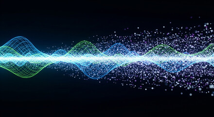 Vibrant digital waveform with glowing particles on dark background