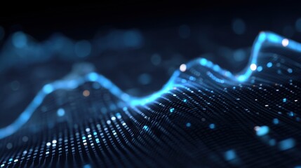Abstract Digital Sound Waves in Motion with Glowing Particles Creating a Futuristic Background for Tech and Music Themes