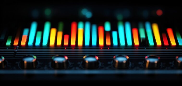 The Equalizer Display with Vibrant LED Bars and Knobs in Dark Studio