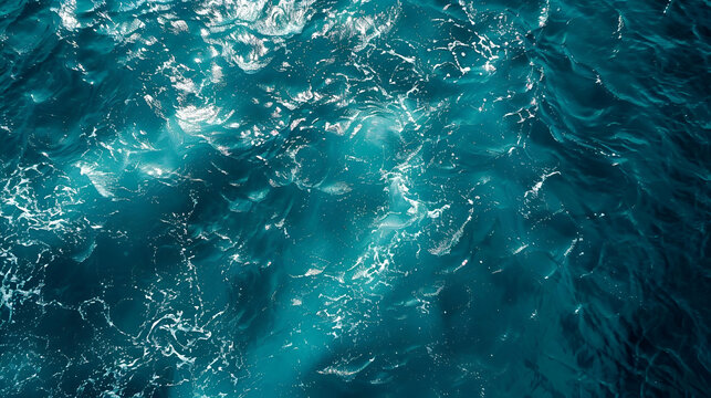 Powerful and turbulent ocean waves with foam and depth close-up view from above