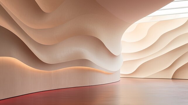 Beautiful and voluminous white wall surface in the form of waves. Gypsum panels for finishing walls in the form of waves