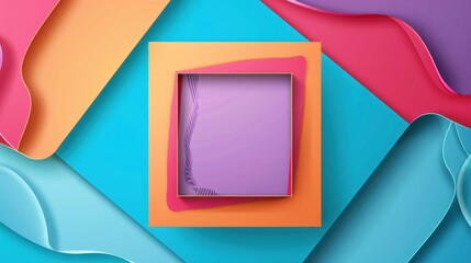 A colorful abstract background with wavy shapes and a square frame in the center.