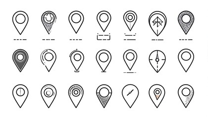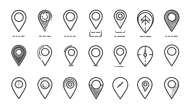 Collection of Hand-Drawn Location Pointer Icons for Mapping Applications and Navigation Systems