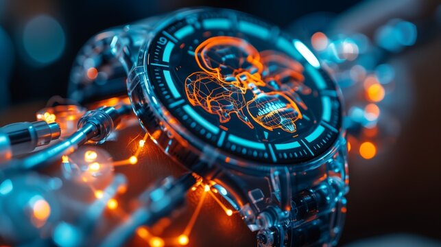 A close-up image showcasing a futuristic wearable biosensor, designed to monitor and manage chronic health conditions.
