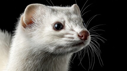 Close-up of a white weasel against black background