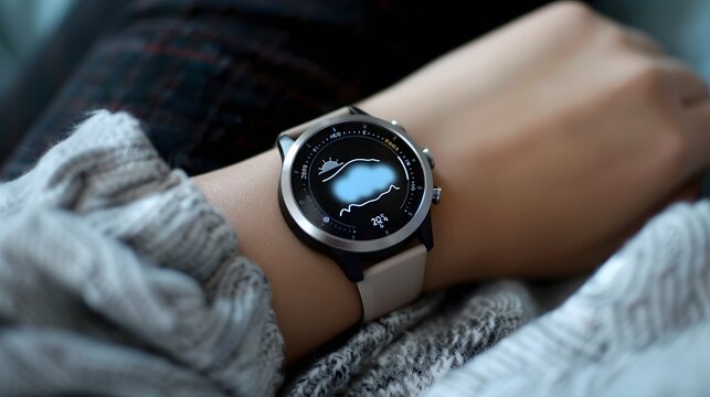 Smartwatch Displaying Weather Forecast on a Woman's Wrist