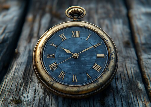 Antique pocket watch on weathered wood