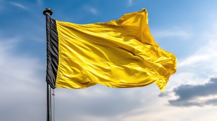 Bright Yellow Flag Waving Against a Blue Sky with Wispy Clouds Signifying Weather Alert or Maritime Signal