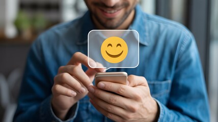 Customer experience satisfaction survey concept user gives rating to service experience on online application client giving a positive feedback via smartphone