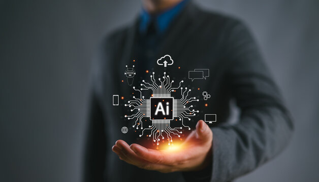 Ai technology, Artificial Intelligence. man using technology smart robot AI, artificial intelligence by enter command prompt for generates something, Futuristic technology transformation. Chat with AI