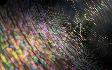 A macro photograph of a spiders web highlighting the similarities between the structure of a web and the interconnectedness of particles in the fabric of the universe.