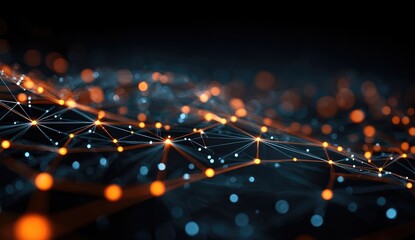 Abstract digital network of interconnected nodes and lines, glowing with light