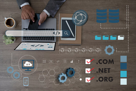Big Data on a Domain Web Page and SEO Internet Domain Name Registration Domain, Address Internet Network Online Website on a Computer