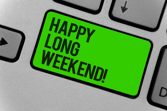 Conceptual hand writing showing Happy Long Weekend. Business photo showcasing wishing someone happy vacation Travel to holiday Computer program keyboard typing office work input device