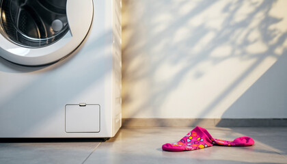 Laundry Day Mishap Bright Pink Sock Found Abandoned Beside Washing Machine