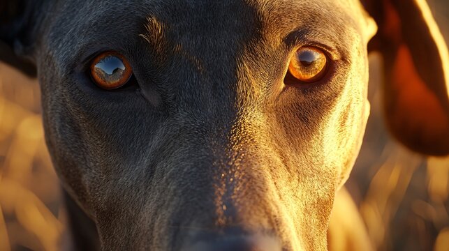 Close up of a weimaraner dog with focused expression