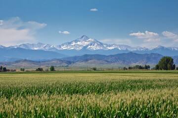 Weld County Colorado. Longs Peak Corn Field - Spring view of front range and Long's Peak