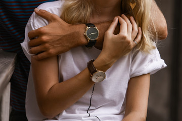 Solid asian man in white shirt and sunglasses posed near black mafia suv car.