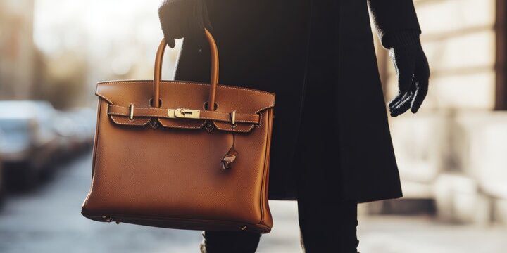 Woman carrying luxury hermès birkin leather handbag