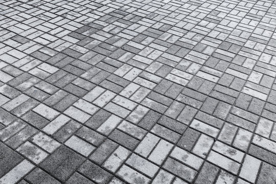 Background texture of gray modern cobblestone road