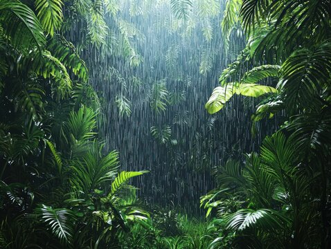 Rain-Drenched Bamboo Stalks with Water Droplets