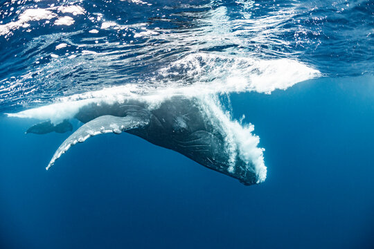 Top view of a whale breaching the water's surface, creating a breathtaking display of power and grace.