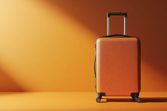 a fashionable orange suitcase on wheels isolated on white representing the concept of travel