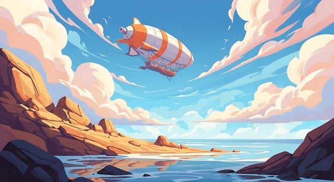 Colorful Artistic Landscape with Airship.