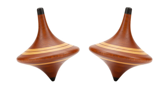 Isolated Two Wooden Spinning Tops for Toy Entertainment