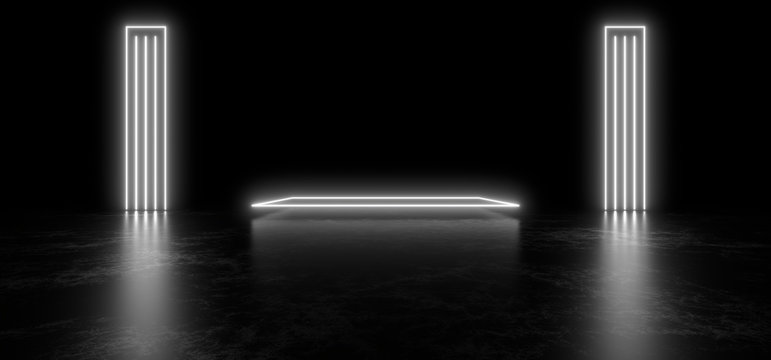 Beautiful composition of white neon lights on a black background. 3d rendering image.