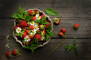 Refreshing iced strawberry cocktails with berries and mint