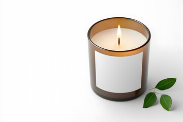 Minimalist White Candle Mockup with Soft Shadows for Spa and Relaxation Copyspace