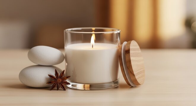 Serene candle display on purple backdrop for relaxation