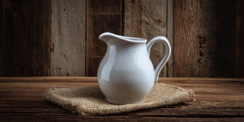 Photo of a white pitcher on a table with plenty of room for your creative ideas with copy space