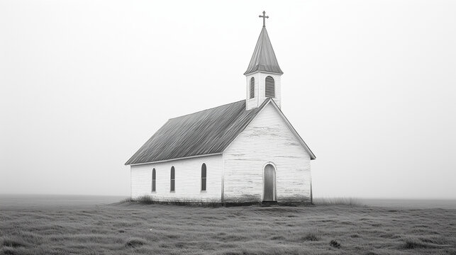 A serene image of a white church with a steeple and a cross on top. Perfect for religious or architectural concepts