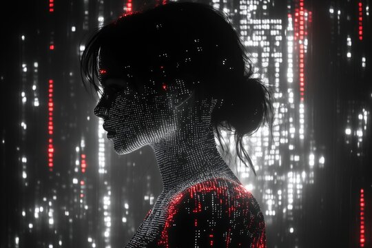 digital codes flow, showing a pattern of ones and zeros in blue and white, symbolizing technological progress. generative ai