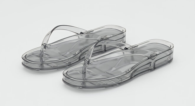 Clear Plastic Flip Flops on White Background for Summer Footwear