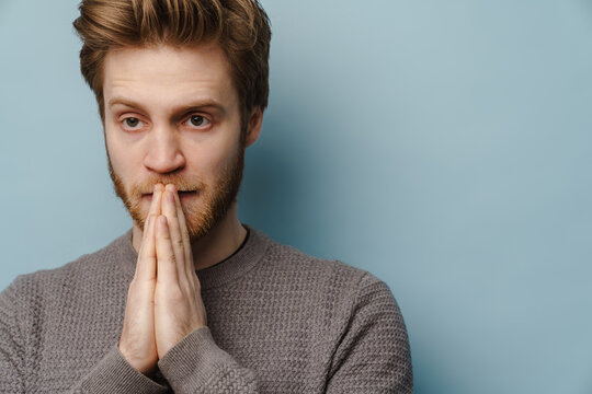 White ginger man with beard posing and looking at camera