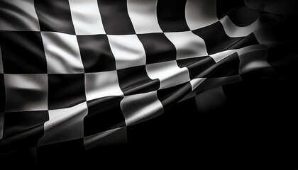 glossy black and white checkered racing flag texture with soft folds for creative background or design use