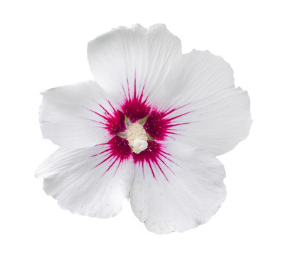 Hibiscus white rose of Sharon 'Red Heart' flower.