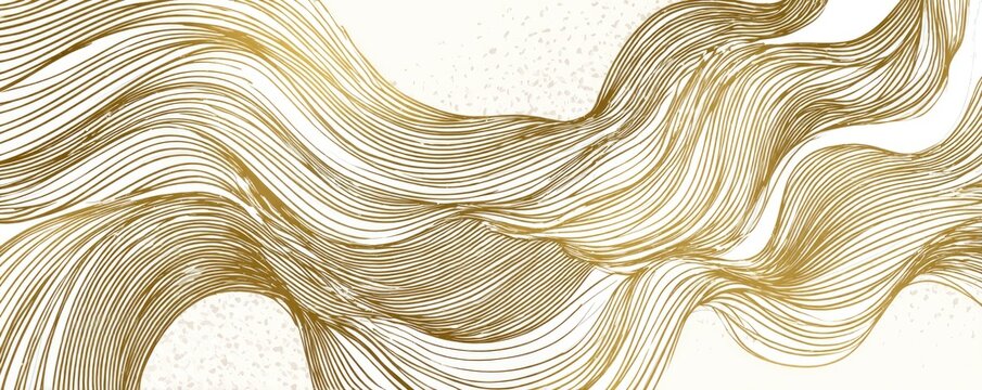 Abstract flowing gold lines artwork on a white background, wavy strokes