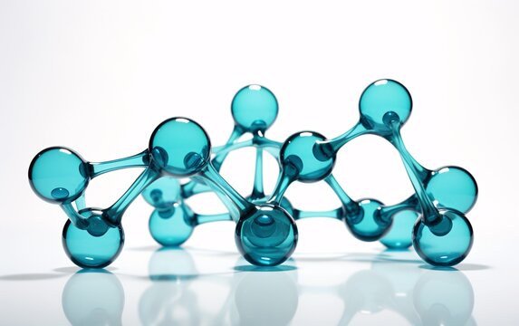 3D illustration of glossy white molecules on a light background. Abstract concept of medicine, skincare ingredients, or scientific innovation. Clean, modern, and minimal design.