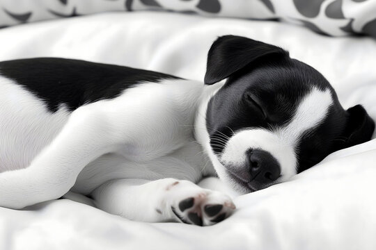 Puppy Nap - A cute black and white puppy taking a nap