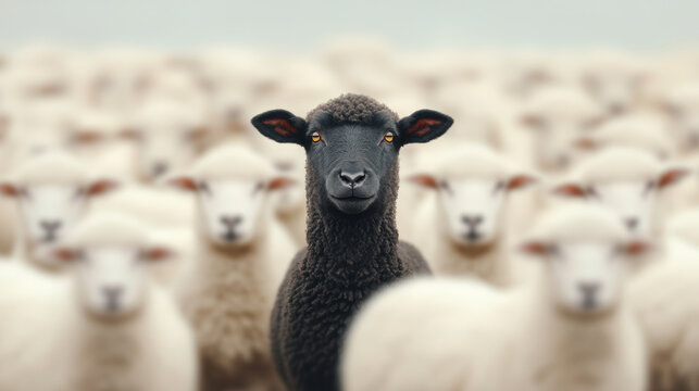 A herd of white sheep with a black beak, nose and ears. Walliser schwarznase. Black nose sheep.