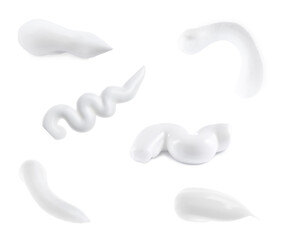 A wavy, curved strip of white thick paint or cream, isolated background.