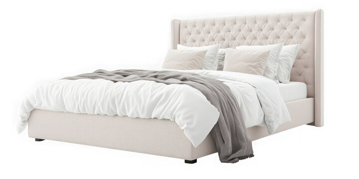 luxury tufted bed with pillows and folded blanket top view modern bedroom furniture isolated on white background