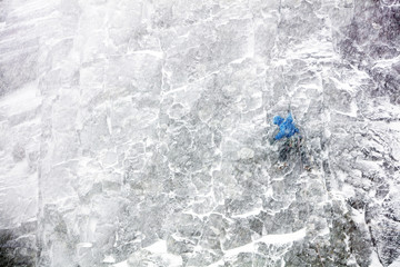 A high altitude snowstorm blankets the landscape in a blizzard, causing whiteout conditions.