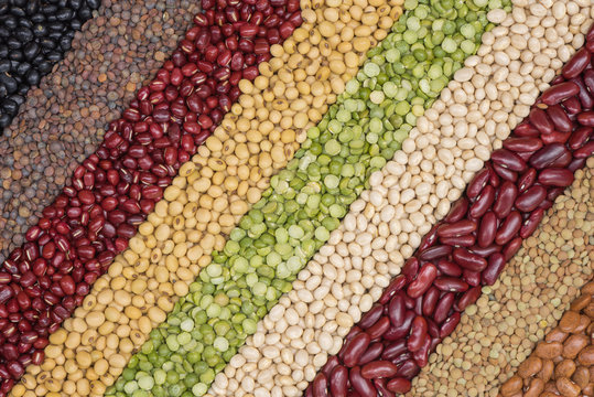 Multicolor dired legumes for diagonal background, Different dry bean for eating healthy