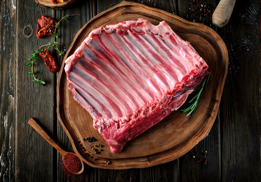 Raw fresh beef whole tenderloin on black background