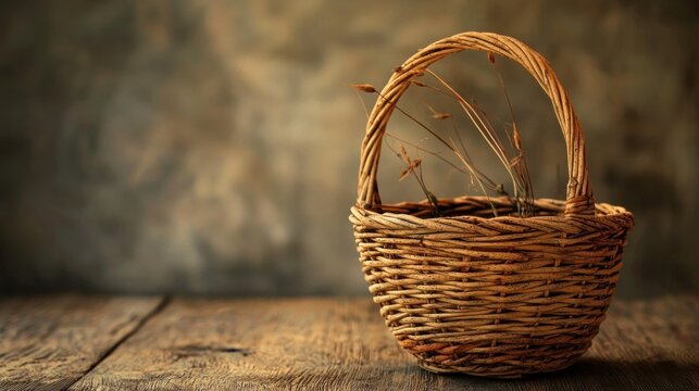 Empty wicker basket, handwoven round threshing basket on the ground